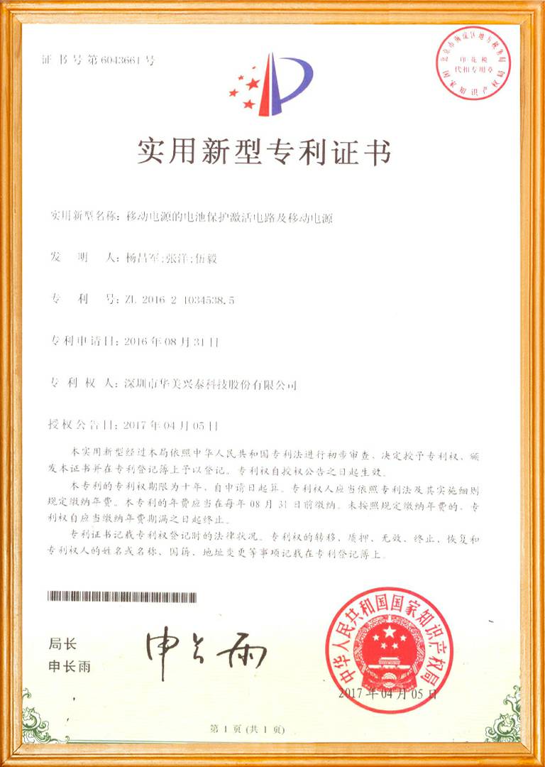 移动电源点击激活保护专利
